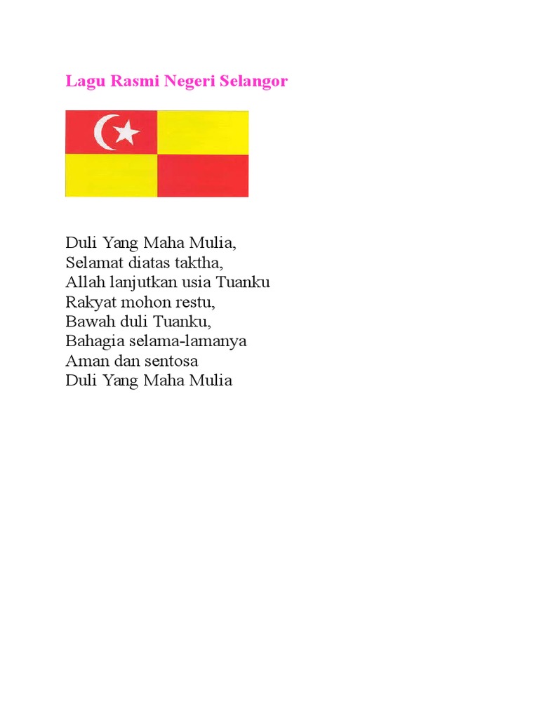 Lagu Rasmi Negeri Selangor Pdf